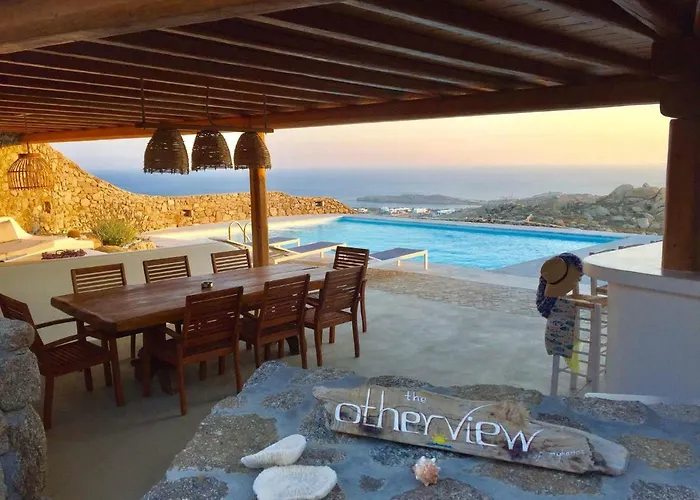 The nearest airport is Mykonos, situated 0.5 km from Otherview Villa. A patio provides a view of the garden. It is possible to rent cars at the Super Paradise Beach villa.